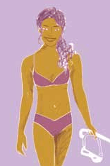 Les conseils de Géraldine Féminiser sa silhouette avec des deux-pièces triangles qui cassent le côté rectangulaire. Miser sur le glamour avec des imprimés et des couleurs vives très nanas ! On n’hésite pas à porter une culotte ceinturée, façon James Bond Girl, idéale pour marquer la taille.