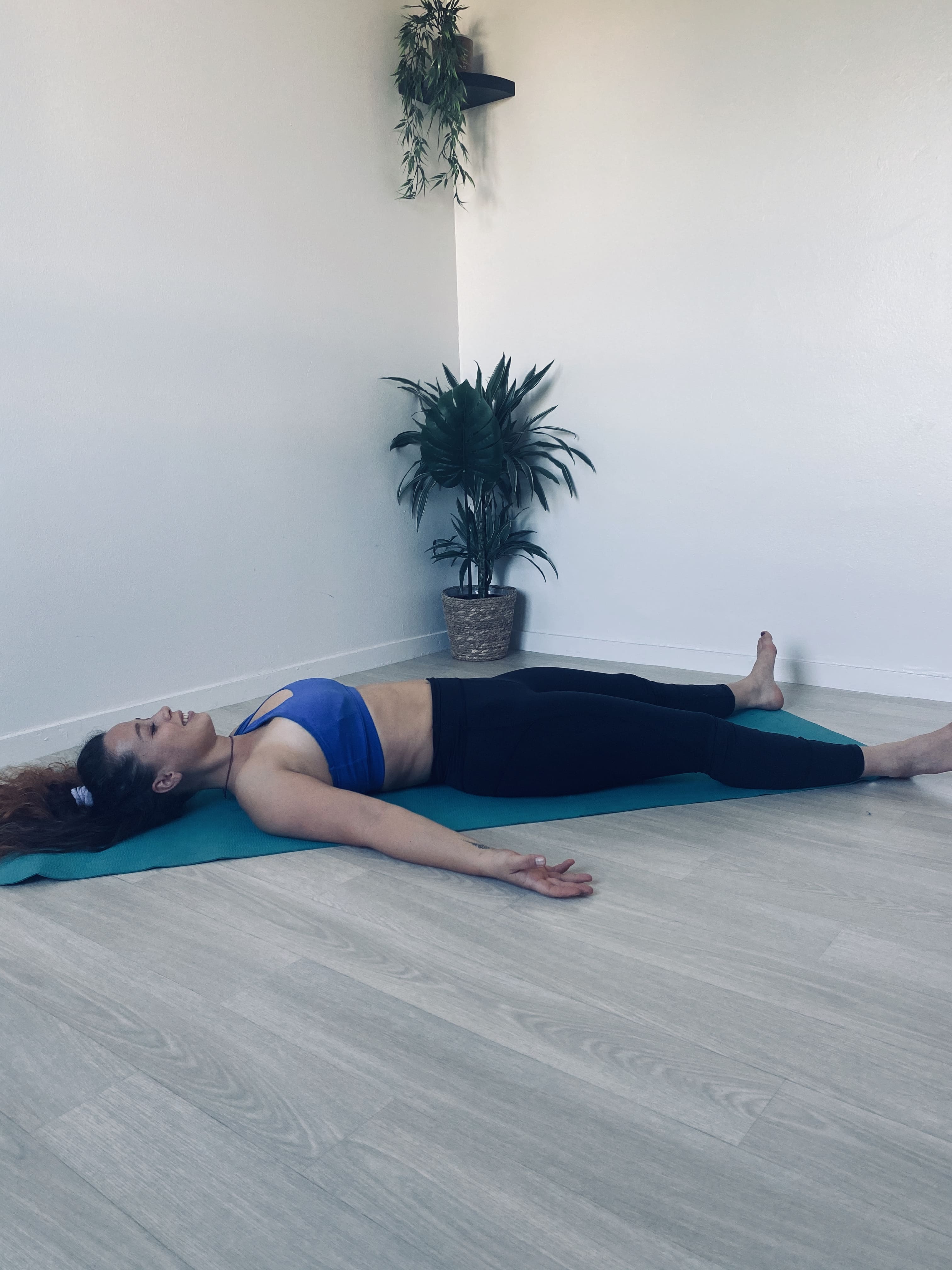 Laissez votre corps fondre entièrement au sol. Visualisez chaque partie du corps des pieds à la tête afin de l’abandonner un peu plus dans le sol. Par exemple, « je relance mes pieds, mes jambes, etc. »