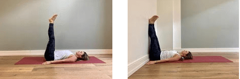 Dans la posture : Fermez les yeux, et allongez chaque respiration, en gonflant le ventre à l’inspiration puis en le dégonflant à l’expiration. Pour une version plus reposante, soutenir l’arrière des jambes contre un mur. Restez 1 à 5 minutes.