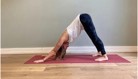 Installation : Placez-vous à 4 pattes sur un tapis, puis crochetez les orteils et soulevez les genoux pour envoyer les fessiers vers le plafond et vers l’arrière. Ce qui forme un V inversé.