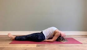 Installation : Asseyez sur le tapis, et placez un bolster (ou long coussin, ou traversin) derrière soi. Aidez-vous ensuite des mains pour allonger délicatement le dos contre le coussin. Le coussin est placé sous de dos depuis le bas du dos jusque derrière la tête. Si le coussin n’est pas assez long, placez-le en priorité sous les omoplates pour ouvrir la cage thoracique.