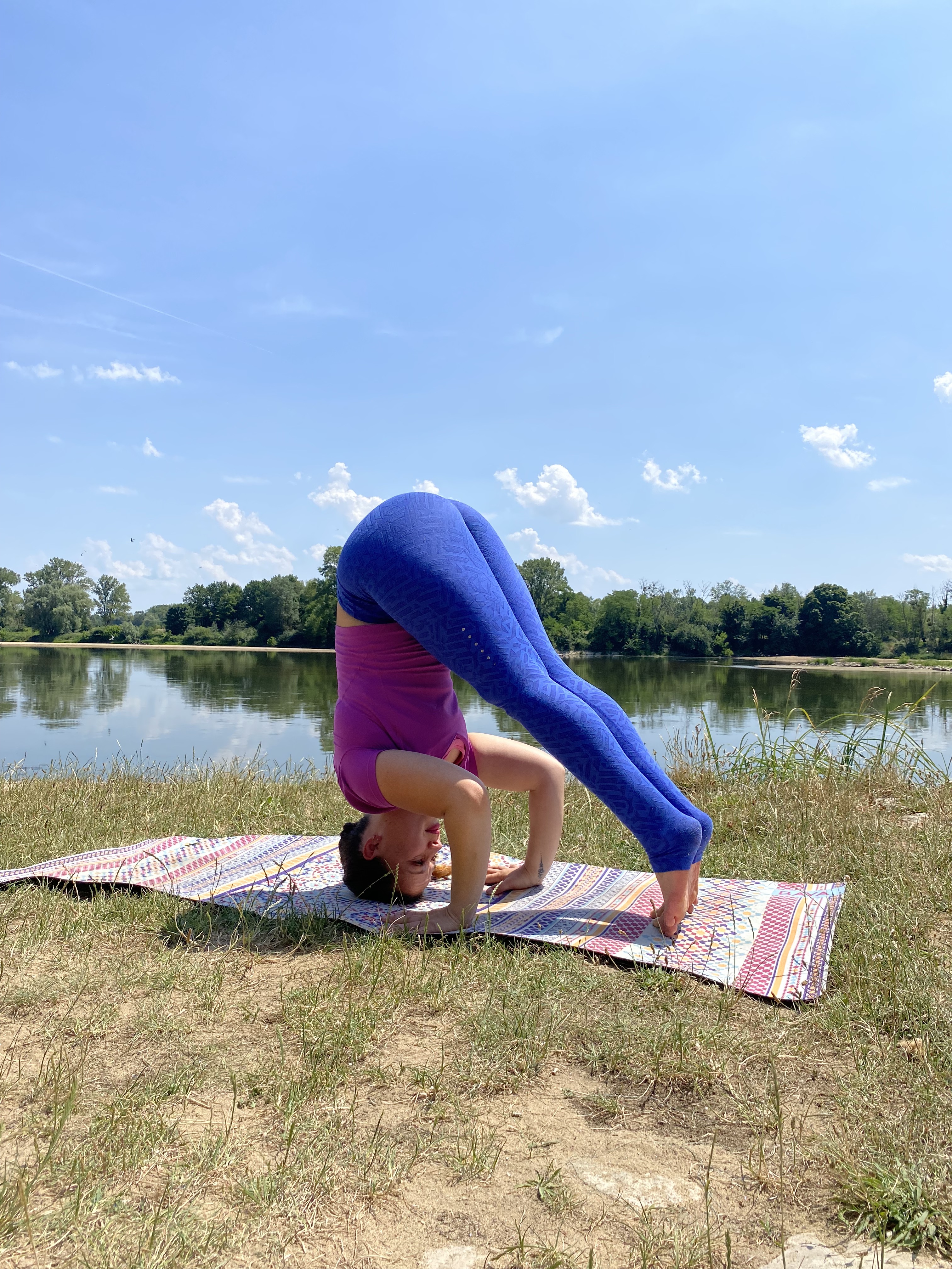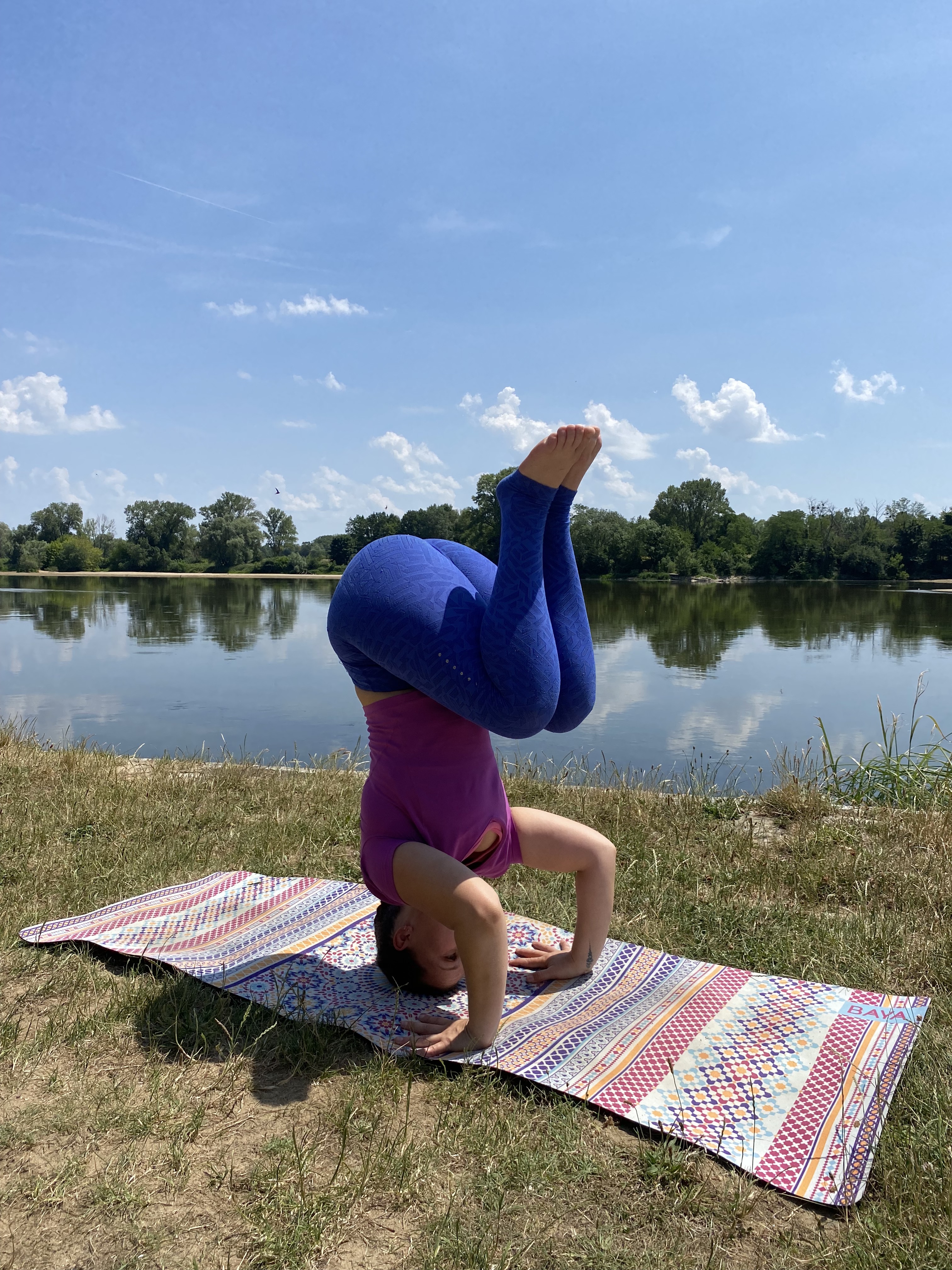 Pour cette posture, vous pouvez doubler l’épaisseur de votre tapis et vous positionner à quelques cm d’un mur pour gagner en assurance.