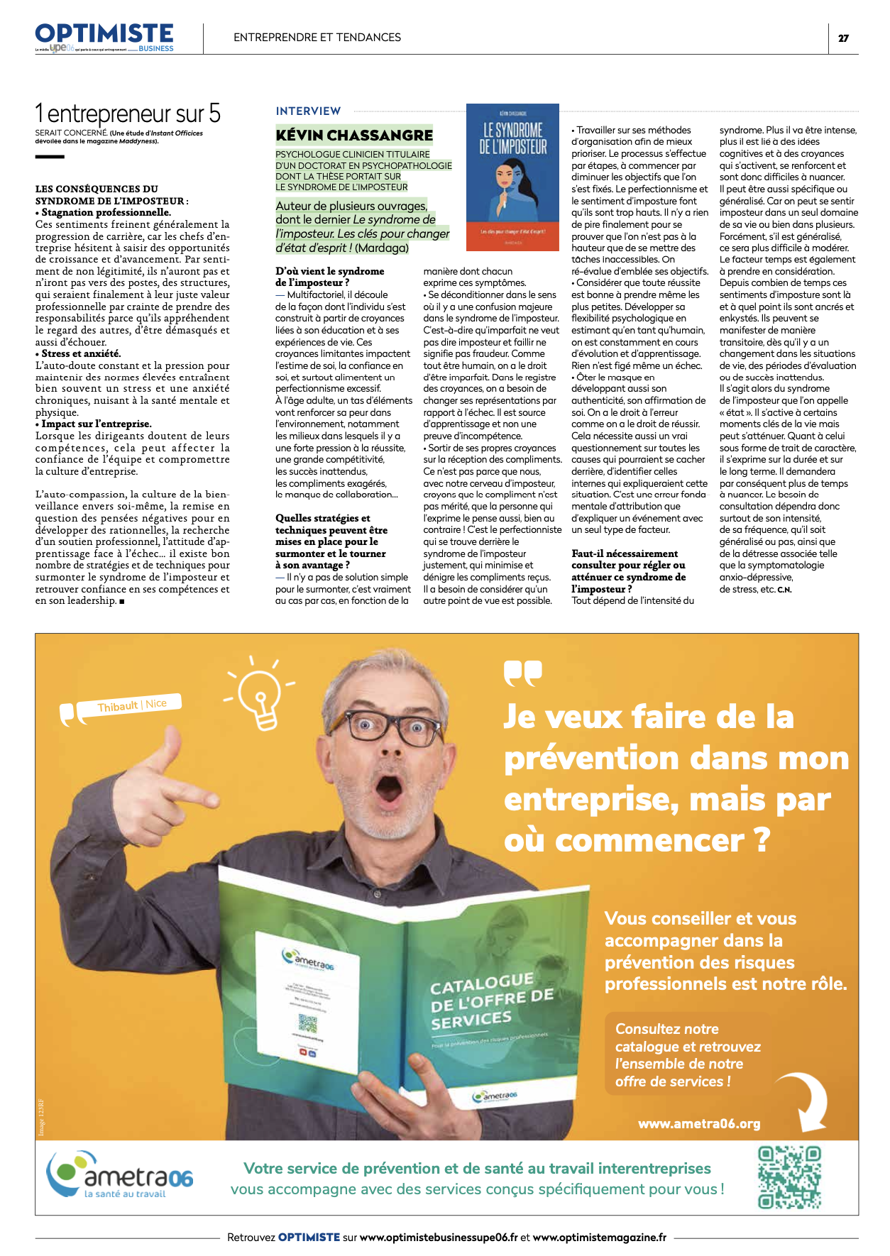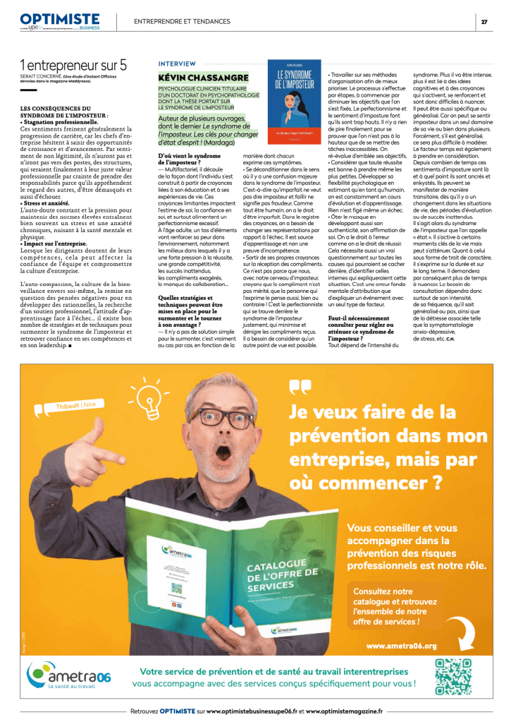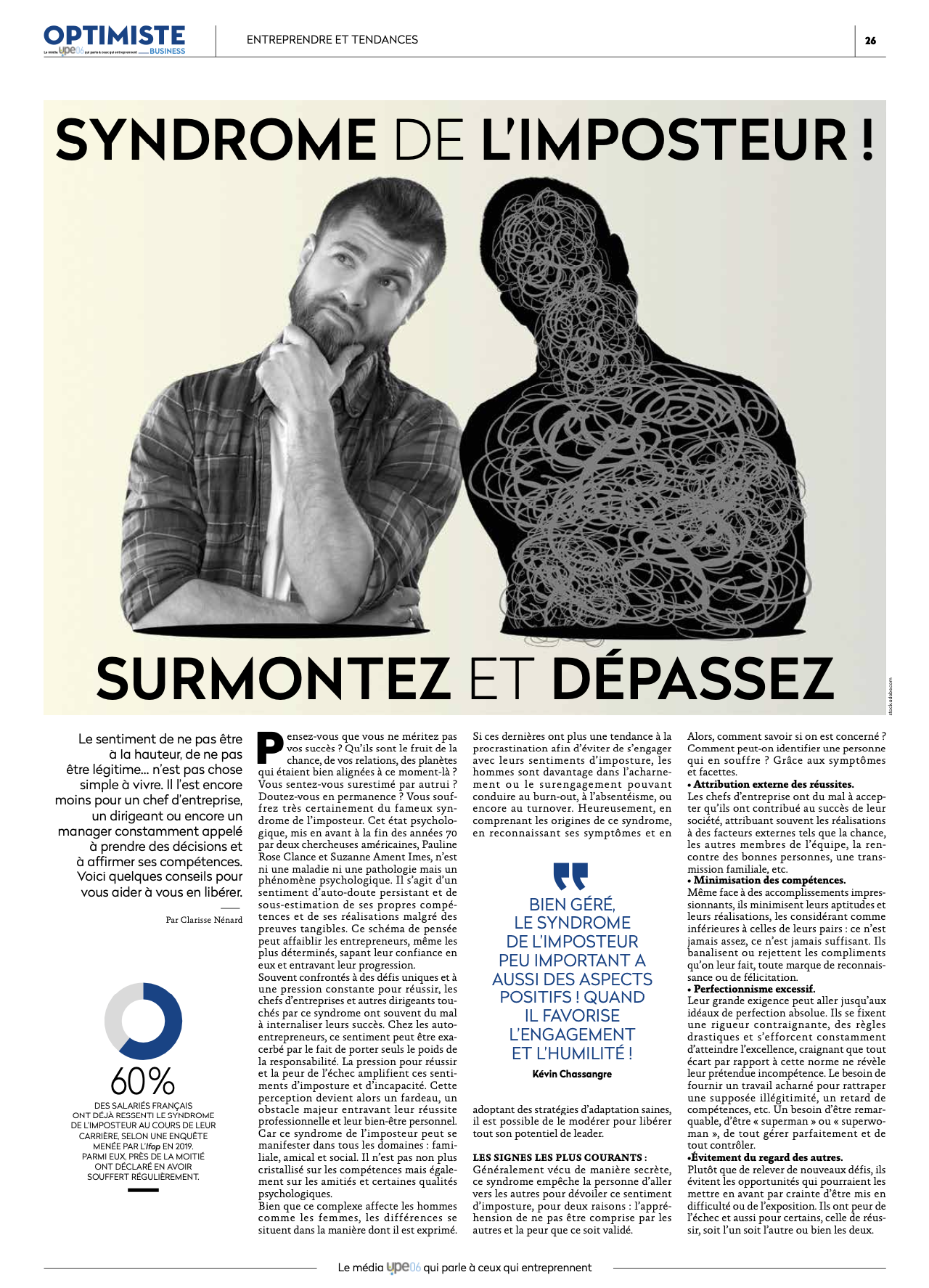Réponse de Kévin Chassangre, psychologue clinicien titulaire d’un doctorat en psychopathologie dont la thèse portait sur le syndrome de l’imposteur, et auteur de plusieurs ouvrages, dont le dernier Le syndrome de l’imposteur. Les clés pour changer d’état d’esprit ! (Mardaga).