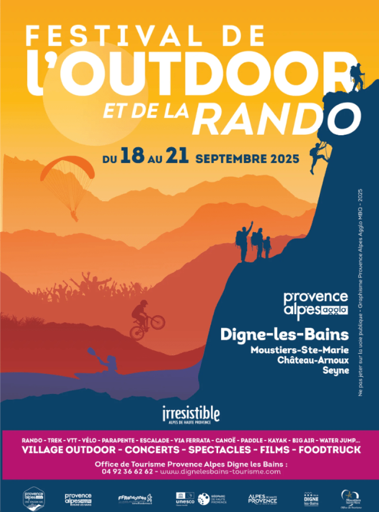 Direction la Haute-Provence pour 4 jours d’évasion grandeur nature ! Du 18 au 21 septembre, le Festival de l’Outdoor et de la Rando 2025 revient avec une programmation aussi riche qu’inspirante : plus de 80 activités encadrées, treks itinérants, concerts, films, spectacles, animations familiales, etc. Quatre jours intenses pour respirer, bouger, s’émerveiller… et partager.
