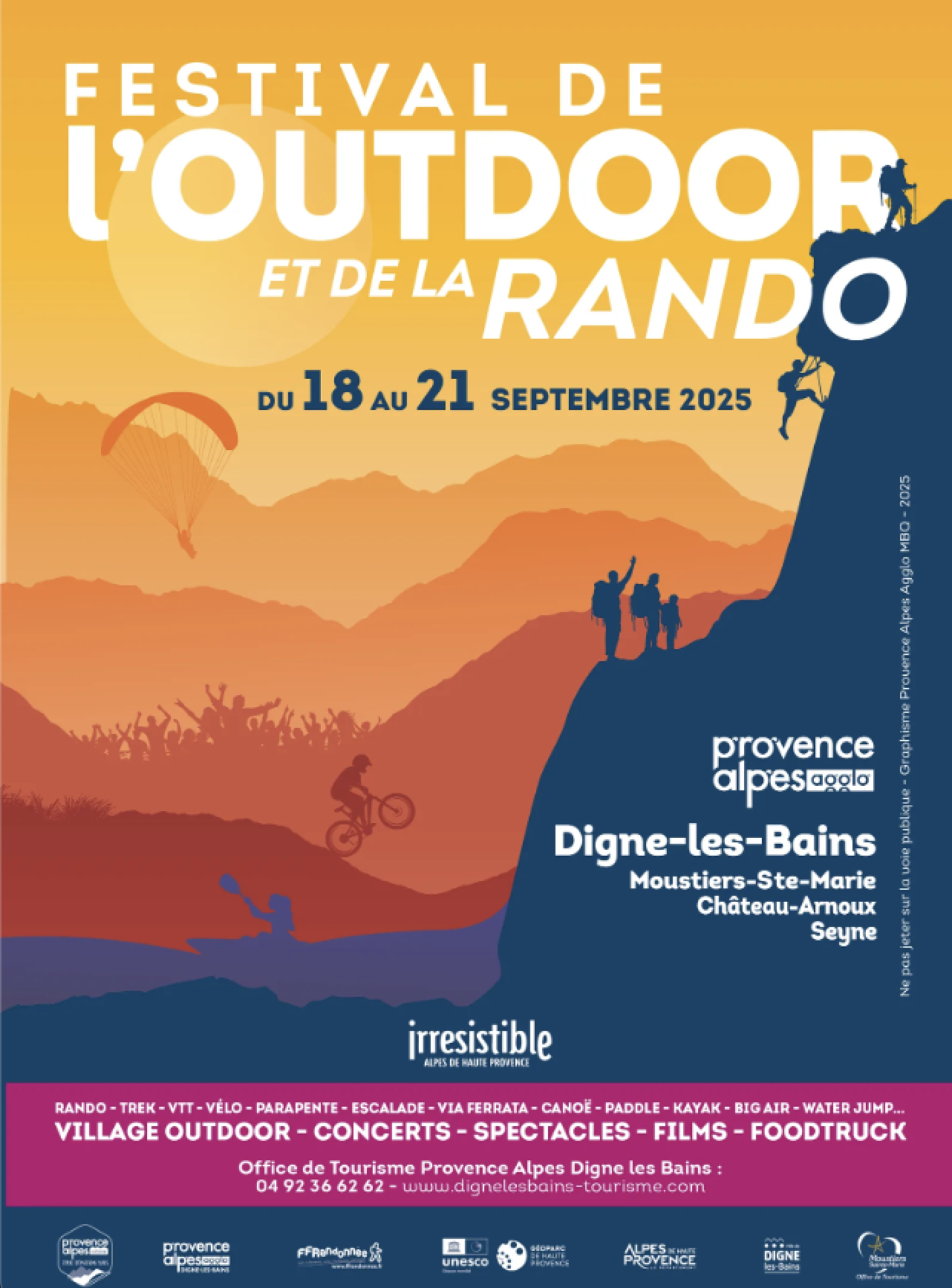 Direction la Haute-Provence pour 4 jours d’évasion grandeur nature ! Du 18 au 21 septembre, le Festival de l’Outdoor et de la Rando 2025 revient avec une programmation aussi riche qu’inspirante : plus de 80 activités encadrées, treks itinérants, concerts, films, spectacles, animations familiales, etc. Quatre jours intenses pour respirer, bouger, s’émerveiller… et partager.